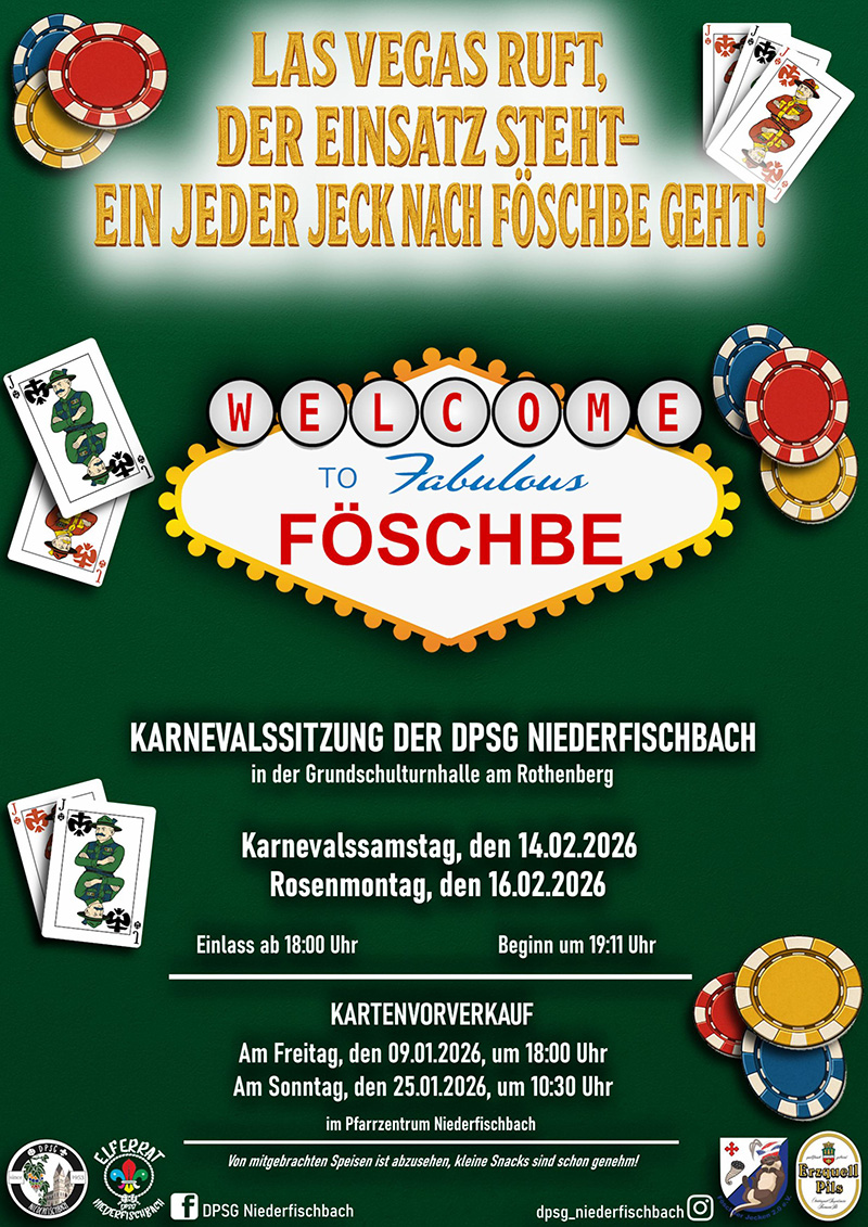 „Las Vegas ruft – der Einsatz steht: Ein jeder Jeck nach Föschbe geht!“ Niederfischbach. Wenn …