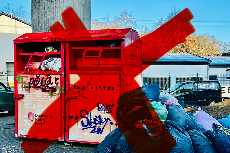 Nach der geltenden Gesetzeslage müssen Textilien aus privaten Haushalten getrennt vom Restmüll gesammelt werden. Über den Restmüll dürfen künftig nur noch stark verschmutzte, durchnässte oder vollständig verschlissene Textilien entsorgt werden, die weder wiederverwendet noch verwertet werden können. Gut erhaltene oder noch tragbare Kleidung gehört grundsätzlich in die getrennte Alttextilsammlung.